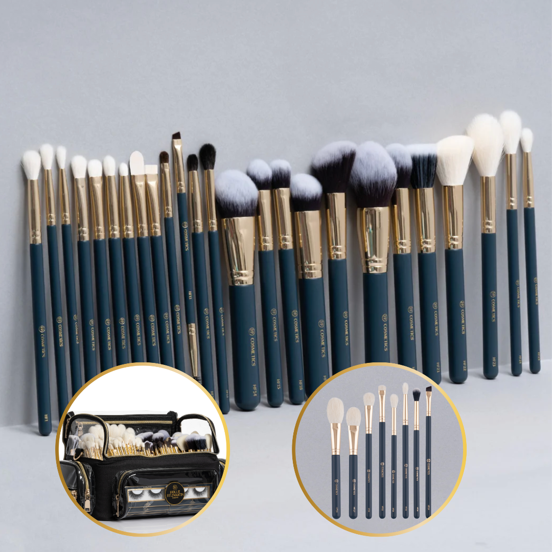Our COMPLETE HF makeup brush collection in one! The ultimate MUA and makeup lover must have bundle including our Cosmetic carry case/brush bag in BLACK.